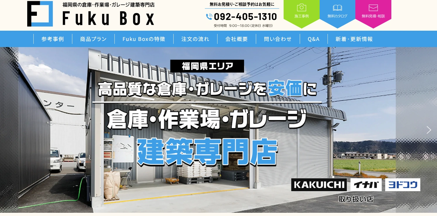 以下は同社が公表している参考価格です。仕様・敷地条件・設備によって大きく変わるため「目安」としてご覧ください。(2025年11月現在の価格です。)Fuku Boxでは、倉庫・ガレージの大きさや仕様によって価格は変動しますが、