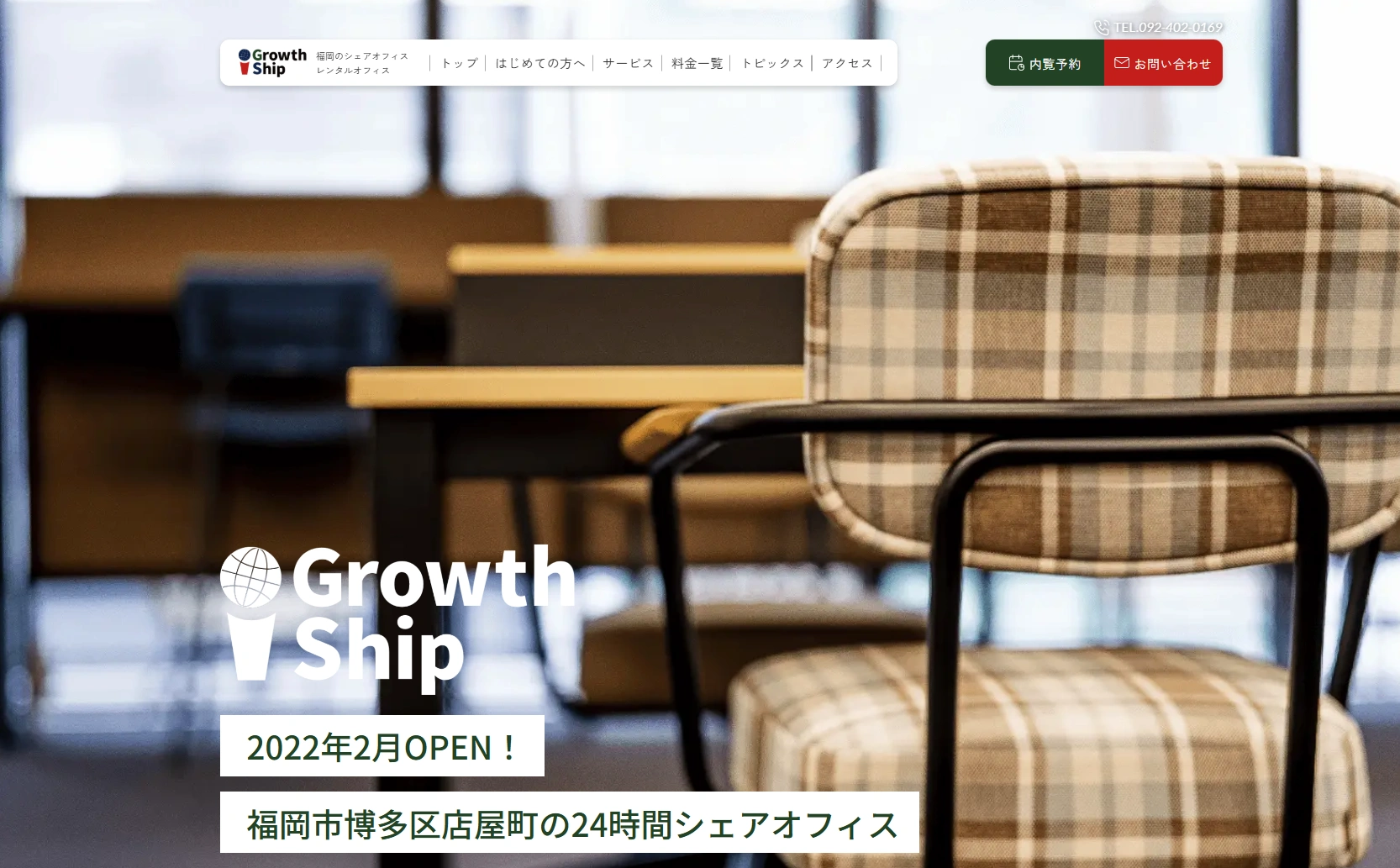 i Growth Ship は、福岡市博多区・店屋町にあるシェアオフィス/コワーキングスペースで、地下鉄「祇園駅」徒歩5分のアクセス良好な立地にあります。シェアオフィスは24時間利用可能で、個人ブース・専用デスク・法人利用可・会議室も完備。コワーキングスペースではドロップイン利用(1時間/1日)から、月額フリー席会員まで、幅広い利用スタイルに対応しています。